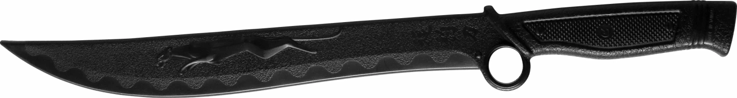 Practice with this Ring Hilt Fantasy Bowie Polypropylene Training Knife! This knife has been carefully crafted to provide a realistic look without the risk of danger or injury. It can be used effectively in solo practice, training drills, disarm drills, and demonstrations, as well as any other activity where you want a reasonably close approximation of realism, without the extreme danger and risk associated with an actual knife. The polypropylene rubber blade is soft enough to prevent the likelihood of most bodily injury, while also featuring a level of firmness that that allows for realistic training.
