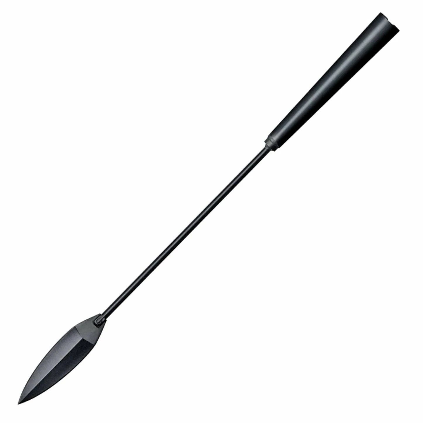 The American Hunting Spear is made in three pieces and it consists of a long steel socket, shaft, and head that are welded together into a conjoined piece. Itβs sturdy enough for throwing and thrusting and will take down any game in North America. To keep the cost low, and for ease of transport, the American Hunting Spear does not include a handle. It is designed to accept most standard 48 inch Ash shovel handles available at most hardware outlets or online retailers. It comes complete with a Secure-Ex sheath.