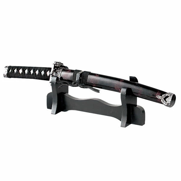 Black finish wood construction. Made to sit on tabletop or other flat surface.