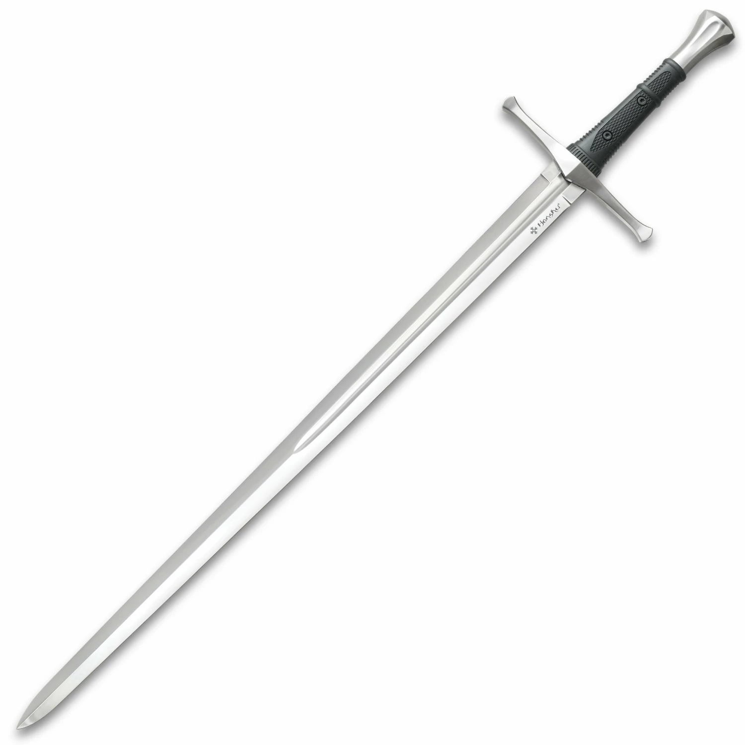 The Honshu Broadsword represents a modern spin on a proven, time-tested sword design with sleek, rugged tactical engineering and perfect blade-to-hilt balancing. It has a razor-sharp, 33 3/8” 1060 high carbon steel blade that has a partial blood groove, which leads up to the hefty traditional handguard. The rugged TPR hilt gives you a no-slip grip and both handguard and pommel are satin-finished stainless steel. The 43 1/2″ overall length broadsword fits securely in a black wooden scabbard that includes a leather belt hanger. Honshu continues to expand its exceptional sword line and this sleek, tactical broadsword is a must-have for your collection