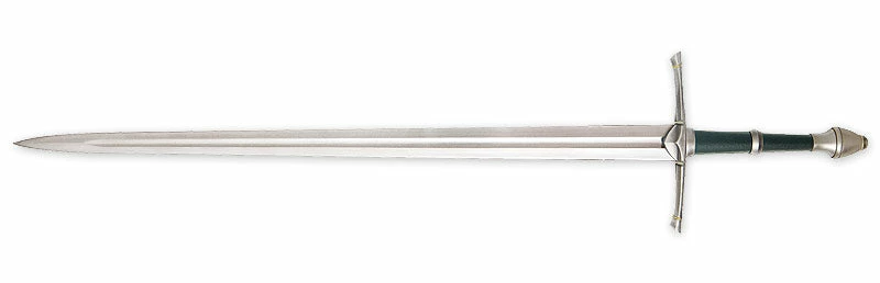 With over 100 million copies sold in over 40 languages, millions have grown up with The Lord of the Rings, the classic epic tale considered by millions to be the greatest fantasy-adventure story ever told. J.R.R. Tolkiens phenomenal epic trilogy chronicles the struggle between good and evil for possession of a magical ring. The book trilogy, named the most popular book of the 20th Century, has been presented in a series of feature films from New Line Cinema. Solid metal cross guard and pommel, antique metal finish. Genuine leather-wrapped grip. 420 stainless steel blade, false-edged. Wood display plaque and certificate of authenticity. 47 1/4″ overall. 36″ blade.