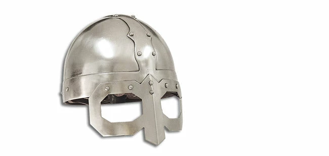 The Spectacle Helm is a variation of the Viking Spangenhelm and is so named for the eyepieces formed integrally with the nasal. Crafted in 16 ga. steel, lined and ready for use.
